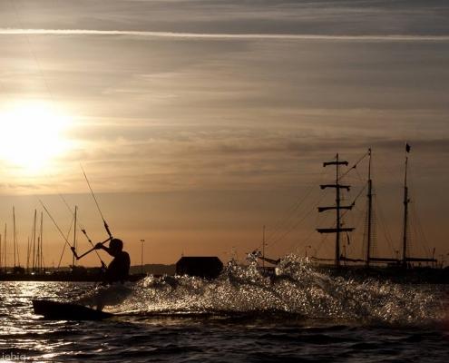 Events, Loth Loriën, Segeltörn, SpaßZweimal im Jahr vertäut Supremesurf sein gesamtes Surfmaterial auf dem Segelschulschiff Loth Lorien zur Bootstour in die dänische Südsee. Der Südwestwind legte die Route über Fehmarn nach Dänemark fest und ermöglichte einen Downwinder über den Fehmarnbelt. Das riesige Stehrevier vor der Hafenstadt Nakskov an der Westküste der dänischen Insel Lolland war Spielwiese für zwei Sturmtage mit Windböen über 30 Knoten.