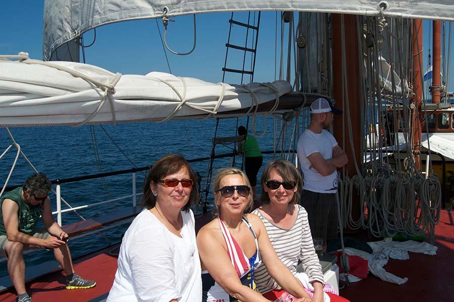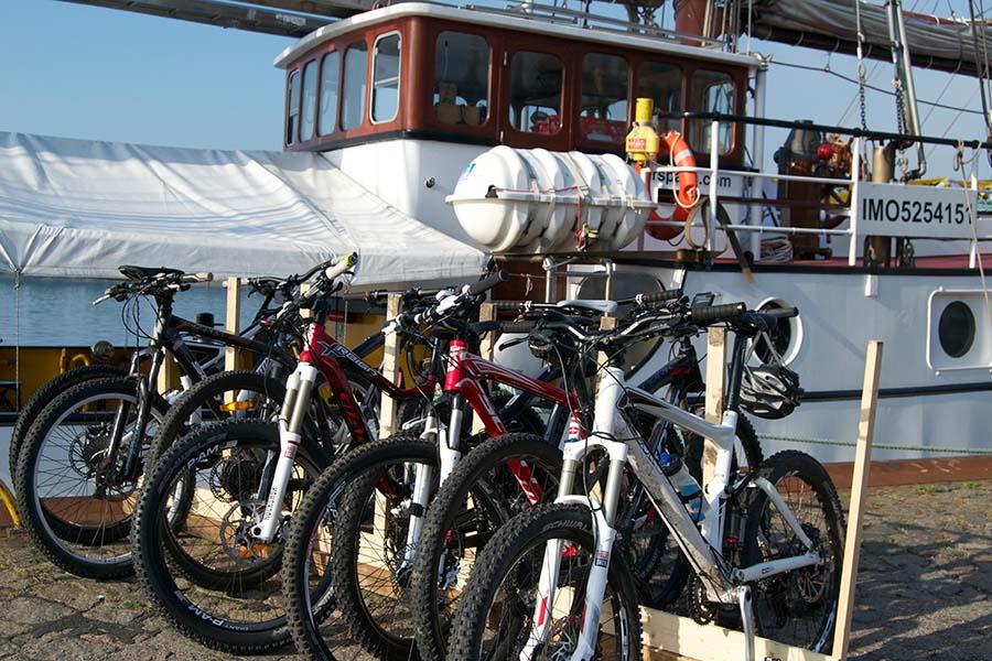 Als Basis für die Bike & Sail Tour war unsere moderne Dreimast- Barkentine „Loth Loriën“ bestens gerüstet. Die Abende konnte man genüsslich an der Bar, entspannt im Whirlpool, oder gesellig auf den Deck ausklingen lassen.