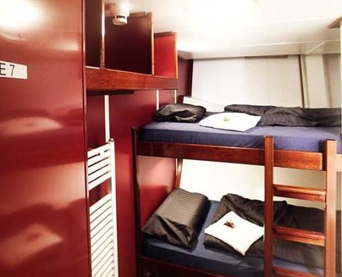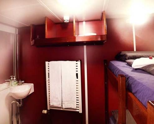 Genutzt werden Salon und Bar der J.R. Tolkien wie gesagt nicht nur für gemütliche Runden, sondern auch für gesellige Empfänge. Das üppige Buffet zaubern Profiköche in der gut ausgestatteten Kombüse. Dazu gehören natürlich Sekt und eine ganze Reihe an Kaffeespezialitäten. Unsere Getränkekarte umfasst jedoch auch alles von Säften bis Sprituosen. Stets genügend Vorräte an Bord sind eine Selbstverständlichkeit. Segeln hat nichts mit Diät zu tun und nach einem langem Tag auf dem Wasser fordert der Magen nun mal sein Recht. Abends dient der Salon der J.R Tolkien dann in geselliger Runde dem Nachtleben. Auf unseren ausgelassenen Parties können unsere Gäste nach einem abwechslungsreichen Tag nach Lust und Laune feiern. Und zu vorgerückter Stunde, wenn die Augenlider langsam schwer werden, winken heimelige, kleine Kabinen mit angeschlossenem WC- und Duschbereich. Sie sind nicht übertrieben groß, dafür jedoch umso gemütlicher.