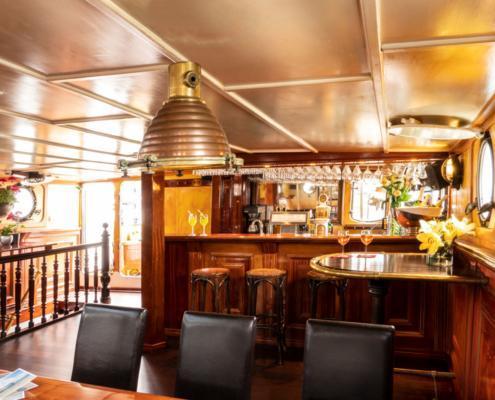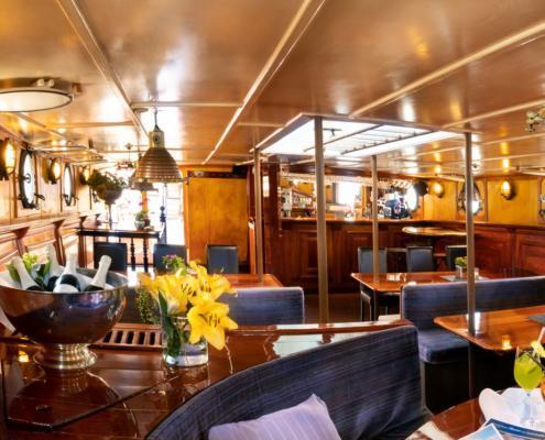 In der voll ausgerüsteten Kombüse lassen sich tolle Menüs zaubern, während Sie an der Bar bei einem Aperitif plaudern. Im Salon finden 40 Gäste Platz.